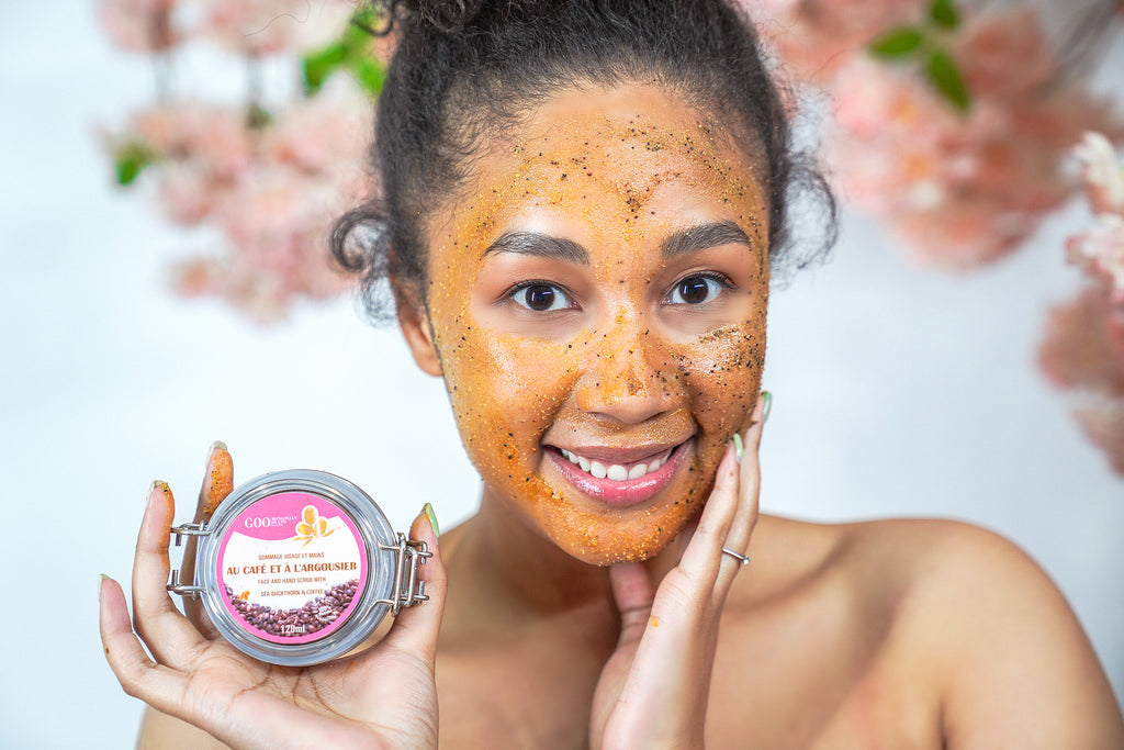 GOMMAGE VISAGE ET MAINS AU CAFÉ ET À L'ARGOUSIER
